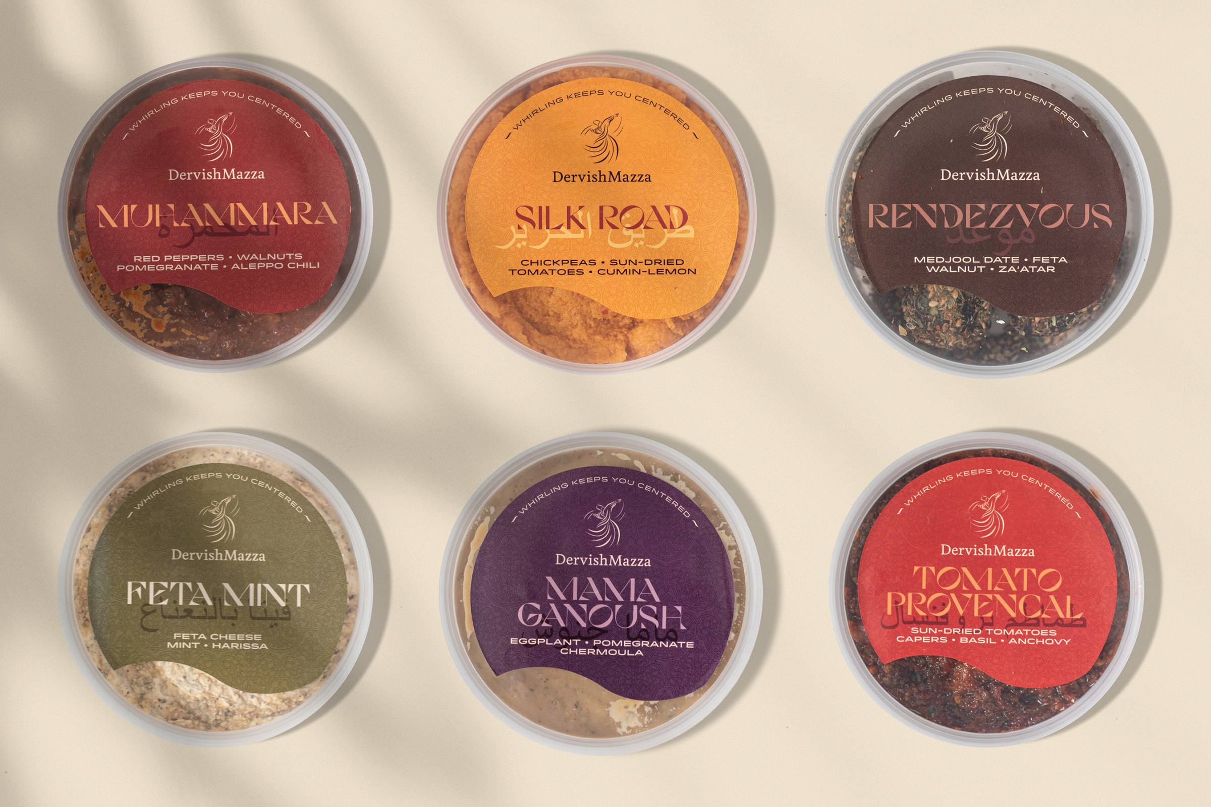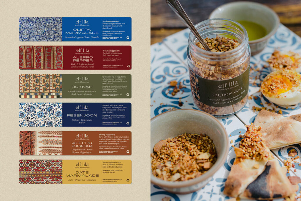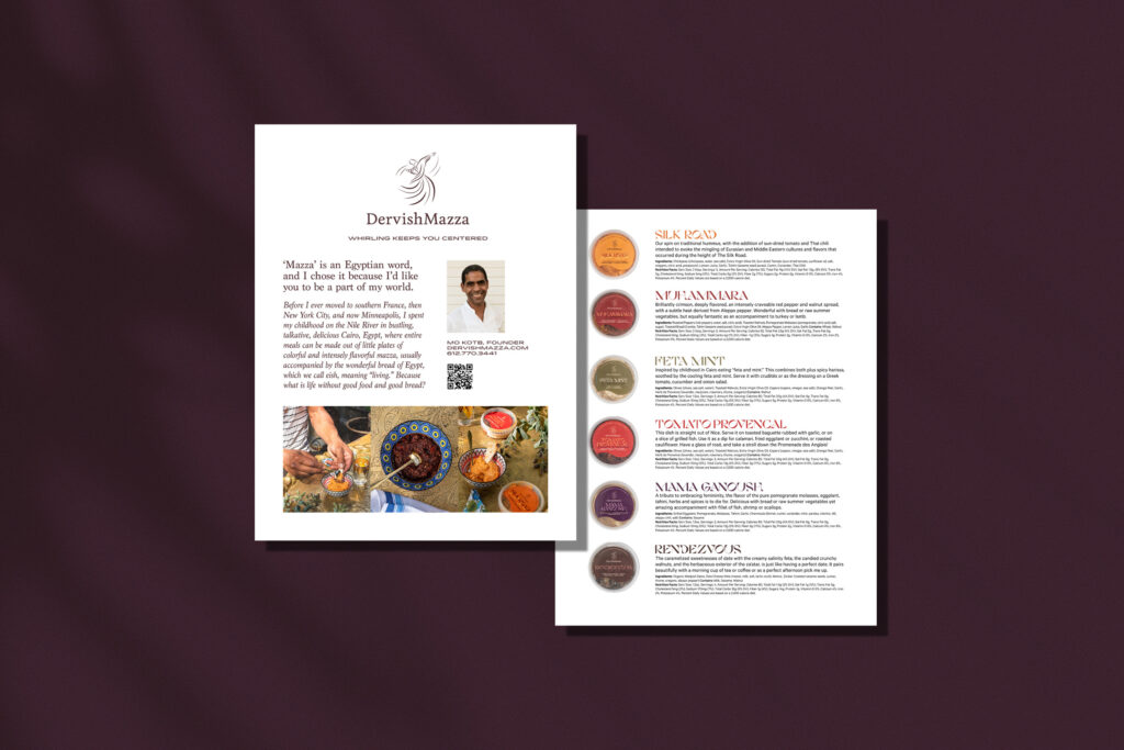Mo Kotb is the talented entrepreneur behind Dervish Mazza, a multi-faceted brand with good taste at its core. He’s crafted an assortment of Middle Eastern/Mediterranean-inspired dips and condiments, in addition to hosting dinners and guests in his home. I created packaging that reflect the warmth of his hospitality, with colors and patterns that transport you to another time and place.